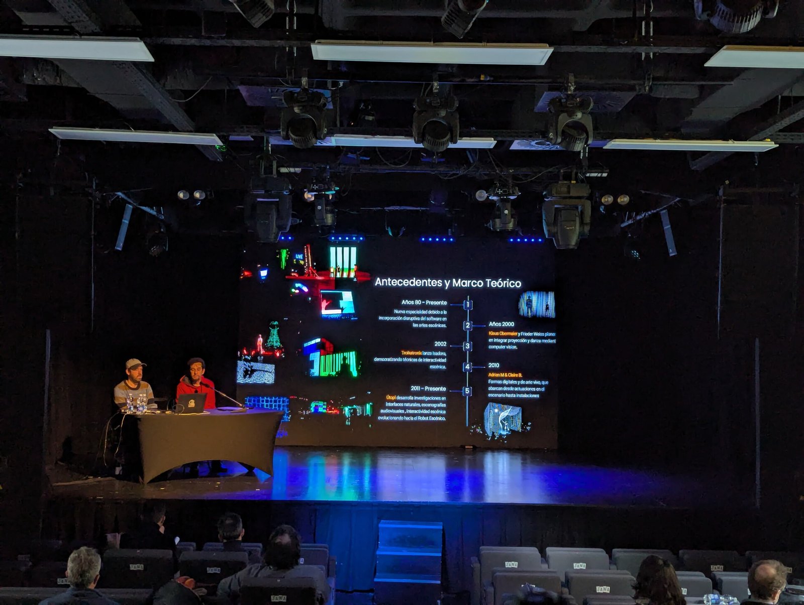 El trabajo se enmarca dentro de la línea de investigación sobre espacialidad digital del grupo ESPACIAR y conecta con la evolución de las instalaciones escenográficas interactivas. El Robot Escénico investiga la relación entre cuerpo, espacio y tecnología, integrando sistemas de visión artificial, librerías como OpenCV y Mediapipe, y la idea de una “sombra digital generativa” como nueva entidad performativa.